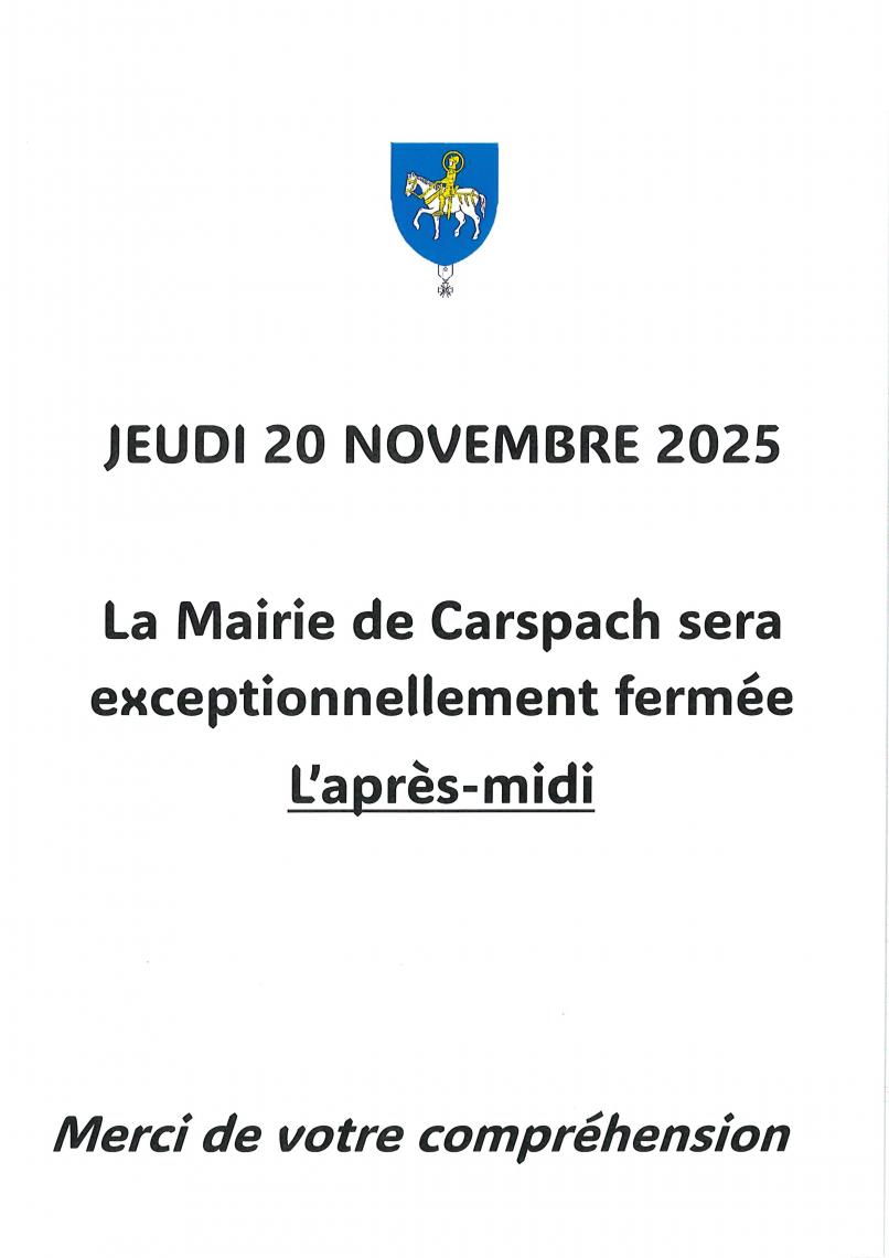 Fermeture exceptionnelle 20 novembre après-midi